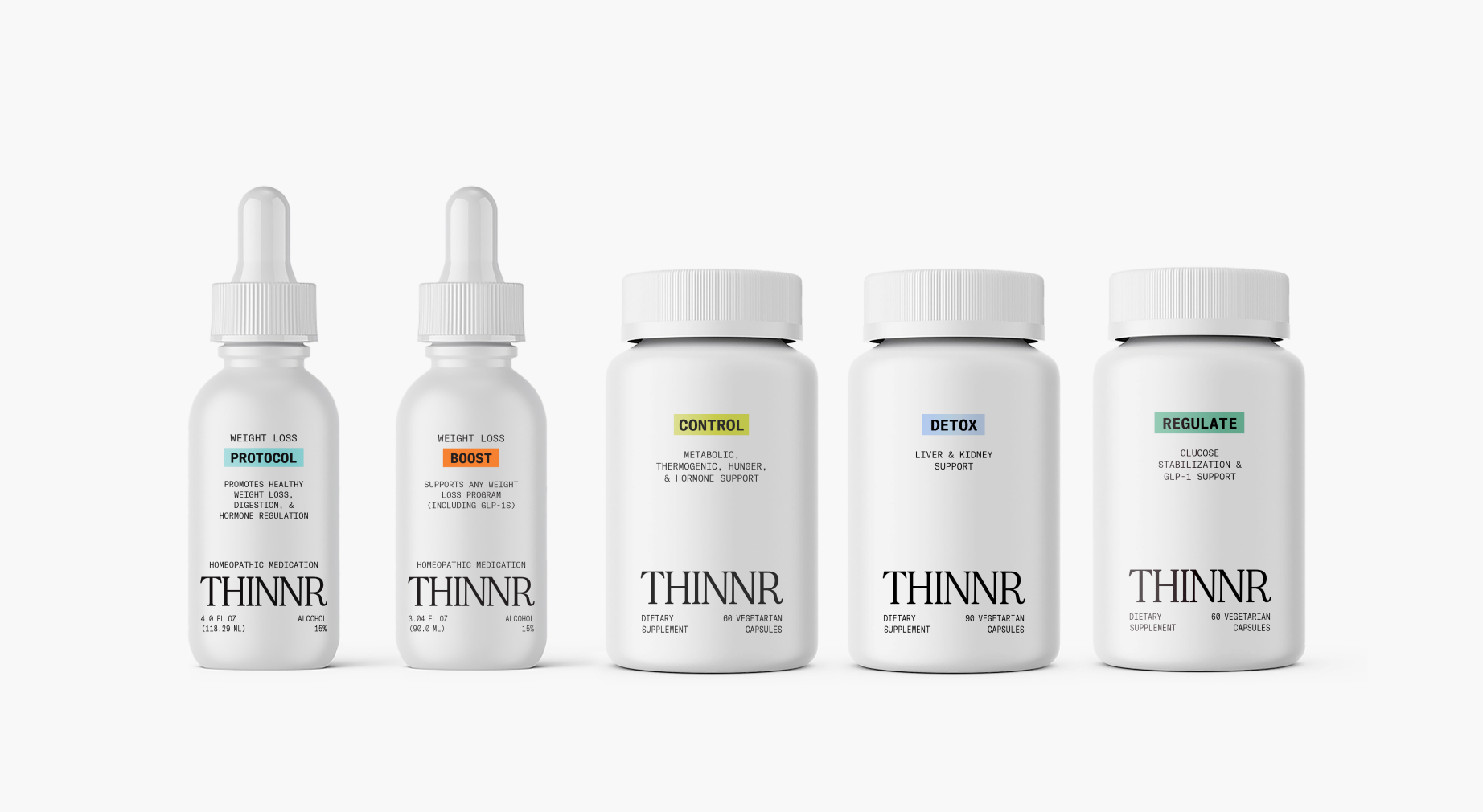 THINNR is a comprehensive, 6-week provider-supervised weight loss program designed as an effective alternative to GLP-1 medications. Built on dual foundations, THINNR combines an FDA-registered homeopathic medication with a scientifically-developed nutrition strategy.
