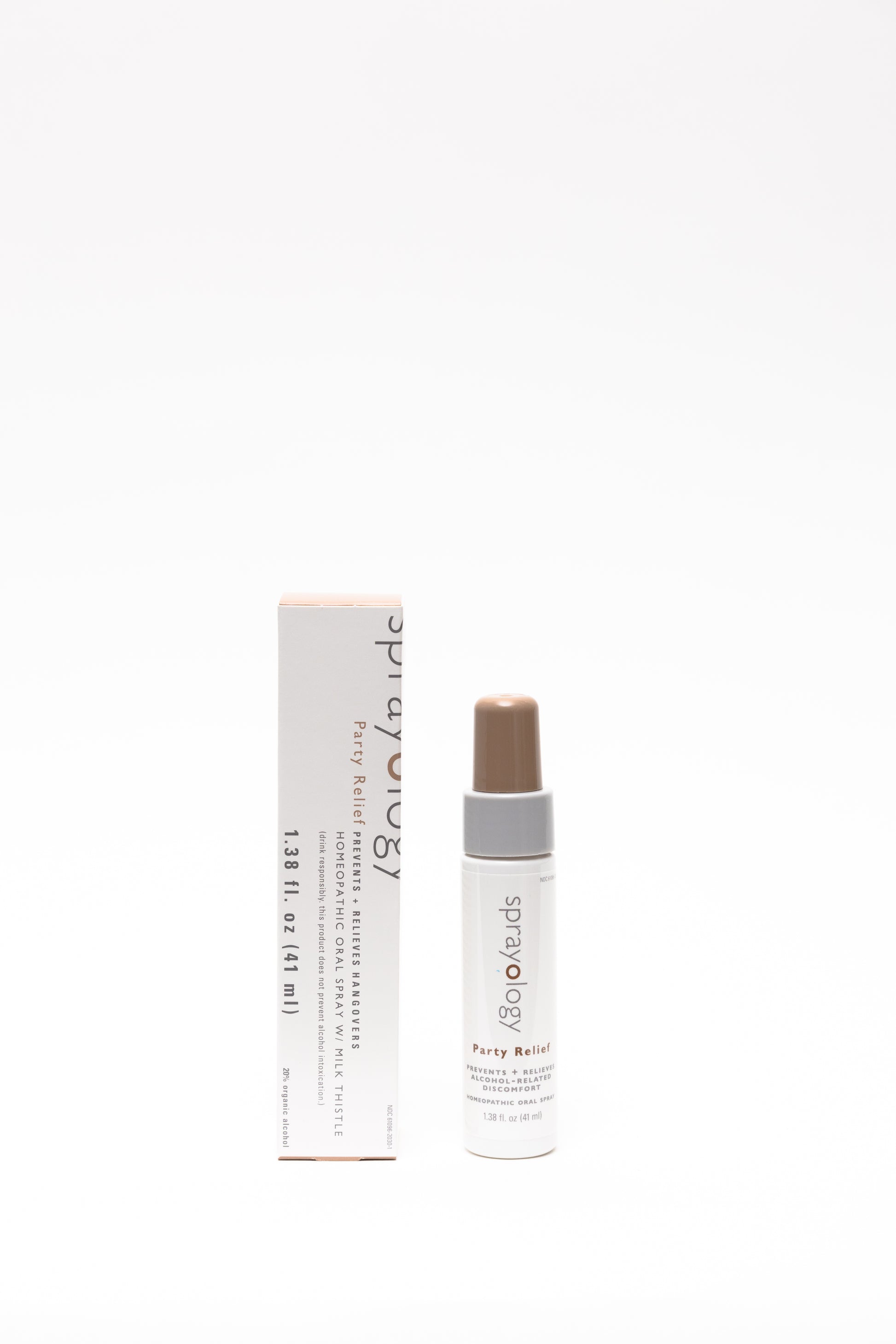 - To use Sprayology Party Relief, adults should spray 2 times under the tongue before drinking, then 2 sprays after each hour of drinking, and again when alcohol consumption ends. For relief the following day, spray 2 times in the mouth as needed up to 6 times a day. It's crucial to consult a healthcare professional if symptoms persist or worsen. Pregnant or nursing individuals should not drink alcohol or use this product.