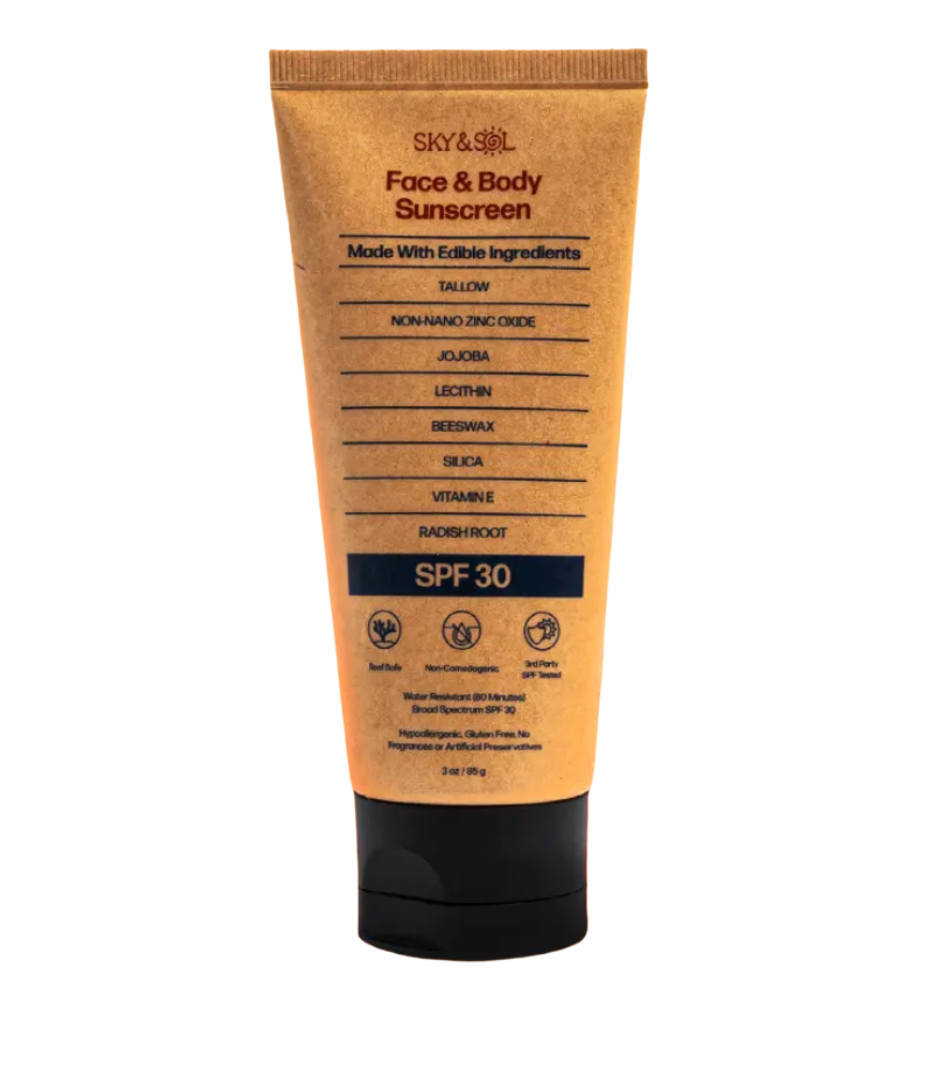 Sky & Sol Face & Body Sunscreen SPF 30 is a revolutionary natural sun protection solution designed to provide comprehensive skin defense without compromising on ingredient safety or environmental responsibility. This innovative sunscreen sets a new standard for clean, effective sun care.